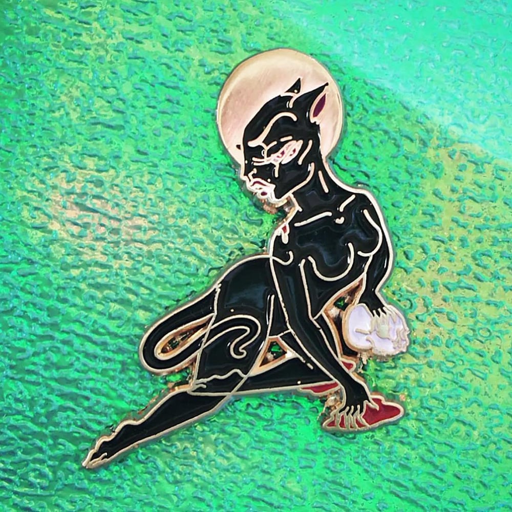 Satiated Sehkmet - Black Cat Magic enamel pin